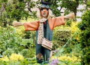 Пугало предназначено не только для того, чтобы разгонять птиц с огорода. Его можно ради забавы одеть в формальную одежду и поставить приветствовать перед парадным входом или у ворот, ведущих на территорию приветствовать гостей, пришедших на какой-то праздник. Можно сделать такого веселого для детских игр или страшного как украшение готской вечеринки, можно, наконец, просто украсить им тематическую территорию, например, дома отдыха на мотив старых русских сказок или детского лагеря. Ниже подробно описаны все шаги, которые помогут вам собрать свое собственное уникальное пугало. Сложность: умеренно легко. Вам потребуются: - пуговицы; - частично общипанная соломенная шляпа (или мужская классическая шляпа как вариант для страшного пугала, или женская для пугала женского пола); - садовые перчатки; - клей; - старая наволочка; - старая рубашка; - старые брюки; - нитки и пряжа; - фломастеры; - резинки; - большая и малая бамбуковые палочки; - веревки; - проволока для рукоделия. 1. Распилите бамбуковую трость в 3 м на две части: первая – 1,2 метра, вторая, соответственно, 1,8. 2. Наложите полученные палочки крест-накрест, пересекаться они должны на расстоянии в 30 см от верха большей, вертикальной палки, малая же ровно на середине. Можно добавить еще одну малую горизонтальную перекладину ниже, чтобы легче было крепить брюки/юбку. 3. При помощи цветной бечевки, проволоки или подходящей тонкой, но крепкой веревки (перевязывая крест-накрест), надежно скрепите две палки вместе. 4. Оденьте рубашку на горизонтальную палку- руки и застегните первую на пуговицы. 5. Среднеплотно набейте рубашку соломой, сухими листьями или лоскутами/тряпками. Завяжите низ рубашки веревкой/резинкой. 6. Набейте садовые перчатки (или не набивайте – по желанию) и поместите их на концы рук . Закрепите при помощи резинок 7. Одну штанину наденьте на низ вертикальной палки, вторая пусть болтается свободно. 8. Заправьте низ от набитой рубашки за пояс брюк. По желанию – как больше нравится – можно, наоборот сделать рубашку на выпуск , а брюки закрепить под полами рубашки и затем украсить талию декоративным поясом. 9. Закрепите пояс брюк на палке при помощи веревки или ремня, если нужно, перекиньте веревку/ремень через горизонтальную палку – тогда штаны точно будут держаться и не упадут, но тогда это необходимо делать после шага 3. 10. Набейте штаны выбранным материалом на ваш вкус. 11. Сделайте голову для вашего пугала, плотно (или по выбору не очень плотно – для плоского лица) набив старую наволочку. В открытом виде наденьте набитую наволочку на верхнюю часть шеста и как следует закрепите, завязав снизу веревкой или резинкой. 12. Изобразите лицо. Некоторым это будет удобнее делать до п. 11, но помните, что в набитом виде лицо может выглядеть по-другому. Лицо можно нарисовать при помощи фломастеров; использовать пуговицы и клей (или нитки), чтобы сделать глаза; а при помощи пряжи можно вышить рот. 13. Воткните шест с пугалом в землю или надежно привяжите его к чему-то вертикально стоящему. Дополнения и предупреждения: - Будьте креативными! Из пугала можно сделать девочку , используя вместо штанов юбку (а под нее по желанию поместить вторую набитую наволочку, чтобы низ тоже смотрелся объемным); можно сделать шпиона или человека в черном, подобрав соответствующую одежду; можно вместо наволочки набить резиновую 